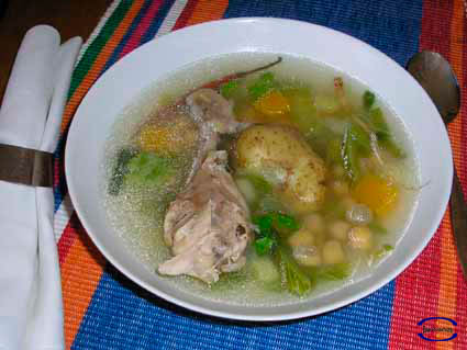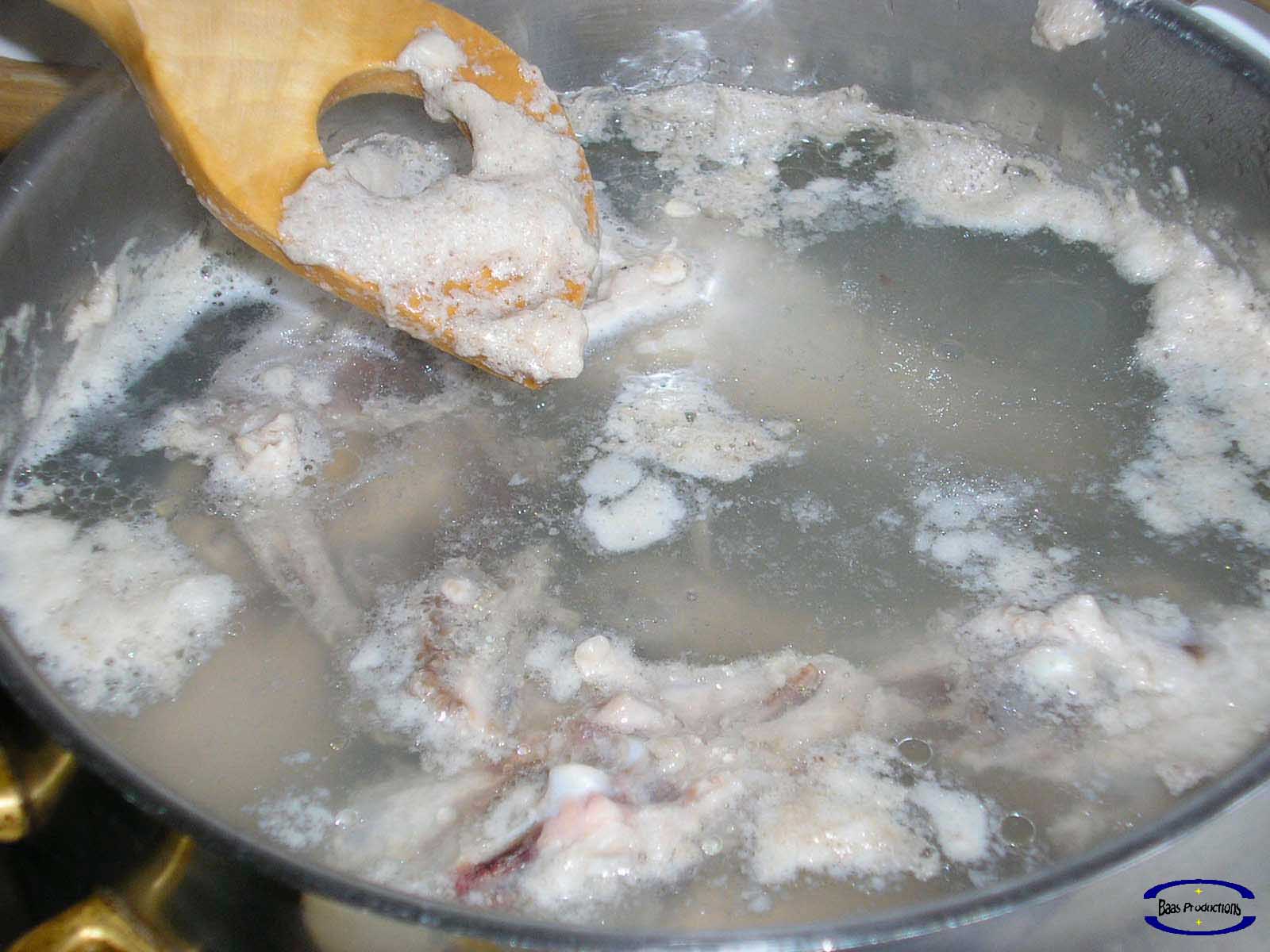Cocinar las piernas de pollo en el agua con un pellizco de sal. Sacar la espuma con el espumadera.. --> --> --> --> --> Agregar el resto de las ingredientes.
